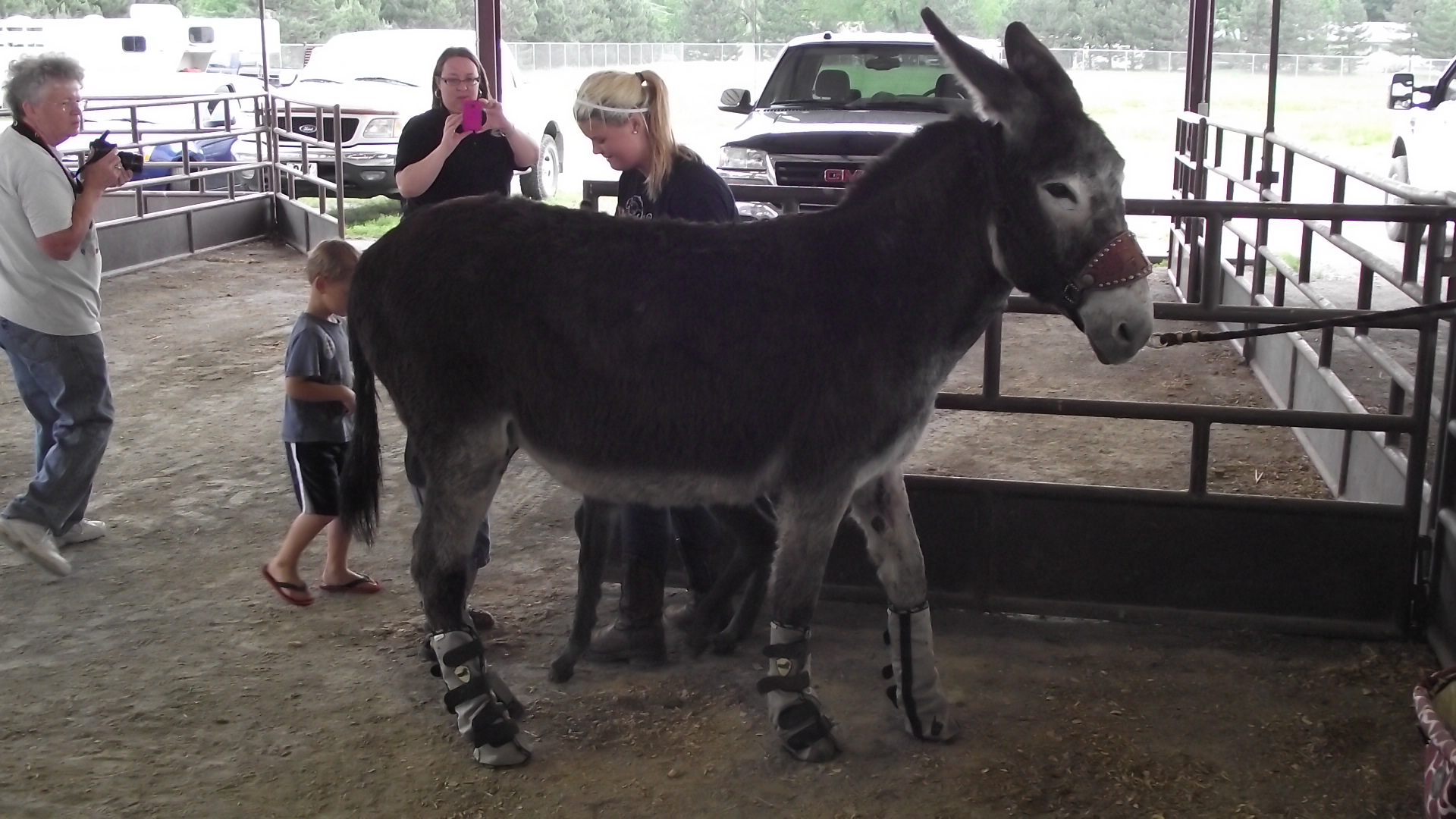 Desconozco la razon de porque este burro usa botas que tienen la facha de ser ortopedicas, lo unico que se es que parecian no molestarle como a algunos perros que he visto usando calzado y caminan como si se hubieran espinado las patas. De casualidad entre nuestros lectores hay un veterinario para que nos saque de dudas sobre la mision de estas botas?