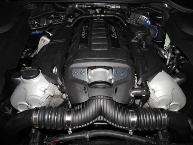 La Cayenne que aqui vemos es el tope de la gama, es en todo el sentido de la palabra una super SUV, despues de todo, la sagre Porsche corre por sus venas y su fuente de poder es un asombroso motor de 8 cilindros, 4.8 L y 500 HP, por si se estan preguntando, si, efectivamente es el mismo motor que encontramos en el Panamera Turbo.