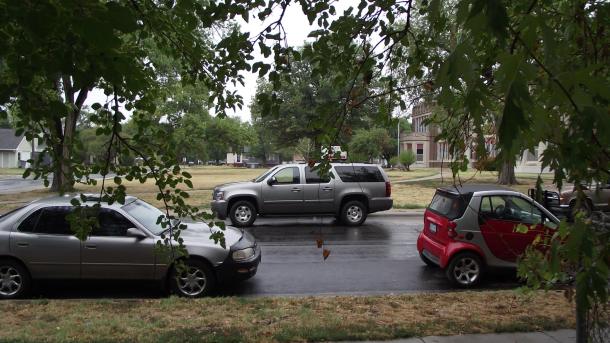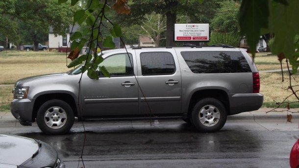 Resulta que para nuestra suerte, justo enfrente de la (su) casa, estan las oficinas del distrito escolar del condado. Tiene sus ventajas, entre ellas que el edificio tiene su encanto, y las areas verdes las utilizamos como extension de nuestro patio. La mayor desventaja sin embargo, es que algunos de los administradores escolares que tienen sus oficinas en las instalaciones, no utilizan su estacionamiento para dejar sus autos, algunos parece que les gusta dejarlos justo afuera de la (su) casa, y la verdad es un poco irritante llegar y ver que han ocupado el que extra oficialmente es «tu» lugar por estar frente a tu propiedad. Es todavia mas frustrante llegar del supermercado, con bolsas de despensa y 5 niños y tener que incluso en ocasiones atraversar la calle solo porque alguien prefiere estacionarse en la calle y no en el estacionamiento de su empleador.