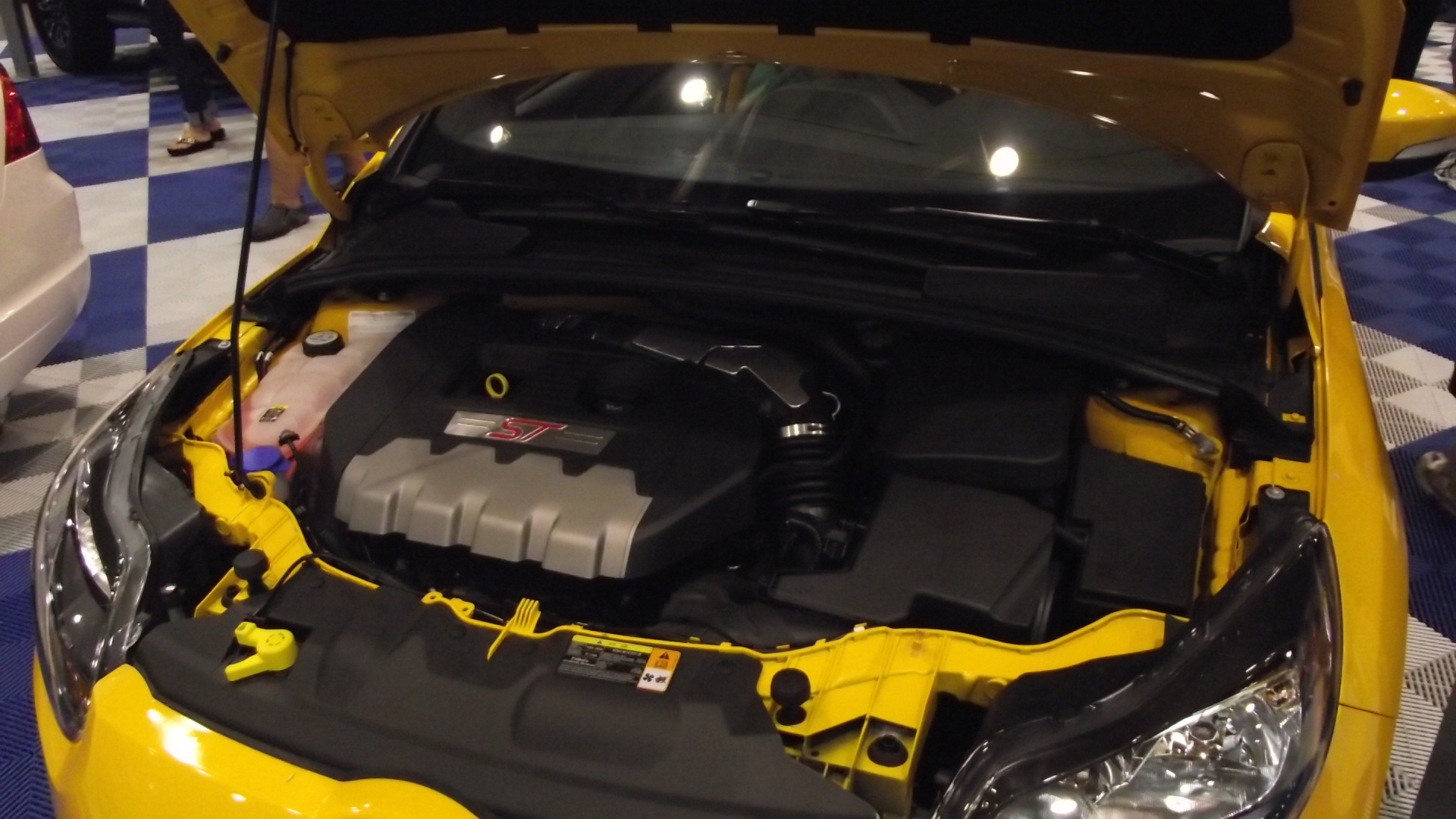 Lo mas interesante esta bajo el cofre, un motor Ecoboost de 4 clilindros y 2.0L es capaz de entregar 252 HP, recordemos que el Focus normal solo tiene 160 caballos, asi que al tener casi 100 mas se nota la diferencia.