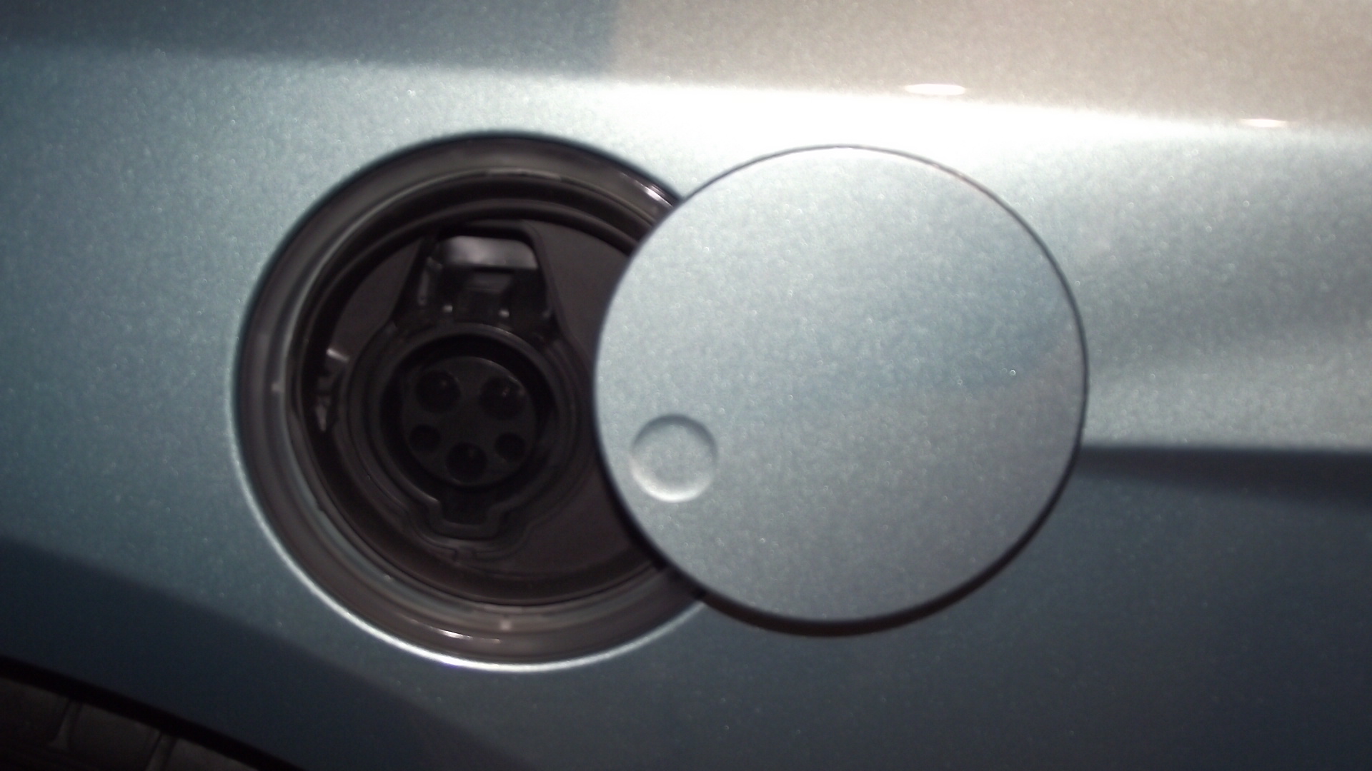 Los mas observadores notaran la ausencia del tapon de gasolina en la parte trasera del lado del pasajero, el tapon del enchufe para recarga se encuentra adelante de la puerta del conductor y tiene una apertura muy singular.