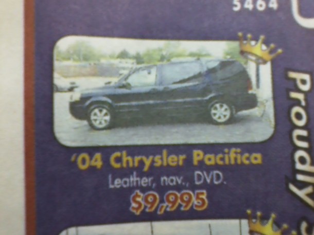 Y que me dicen de esta bonita Chrysler Pacifica 2004? Es obvio que la foto pertenece a una Chevrolet Uplander: