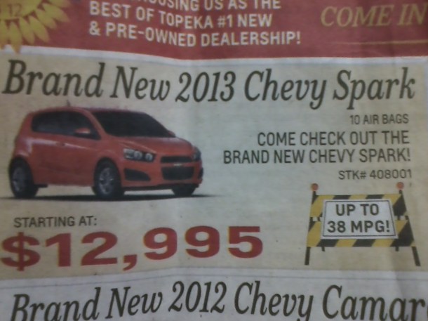 Con esto bastaria para ver la ignorancia de algunos que se ganan la vida vendiendo autos, y es que hasta los mas novatos en el tema saben que el auto de la ilustracion es un Sonic, por atras se parecen si, pero por adelante son completamente distintos.