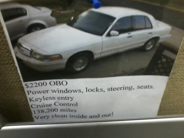 Inmediatamente note que la informacion estaba incompleta al no poner un numero de telefono, y asi, como se contacta al vendedor? Es mas ni siquiera puso su nombre para buscarlo por cualquier otro medio llamese Fakebook, Google o Seccion Amarilla. Por esa razon parece que a ese Crown Victoria lo estan queriendo vender sin querer venderlo.