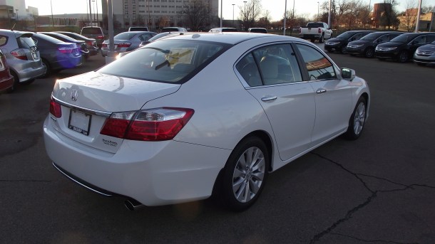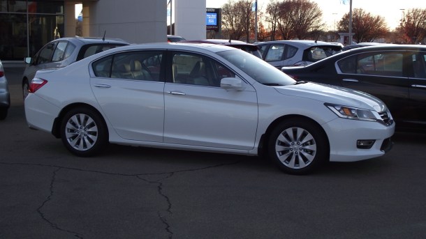Para el 2013 se han agregado 2 variantes, por lo que ya hay 6 en total: LX que inicia en $21,680 dolares, la nueva version llamada Sport, sigue la EX, despues EX-L, enseguida esta la EX-L V6 y termina la nueva Touring que tiene un precio final de $39,385 USD si se piden todos los accesorios. La unidad aqui vista es un EX-L de 4 cilindros color blanco orquidea y tiene un precio de $28,785 dolares.