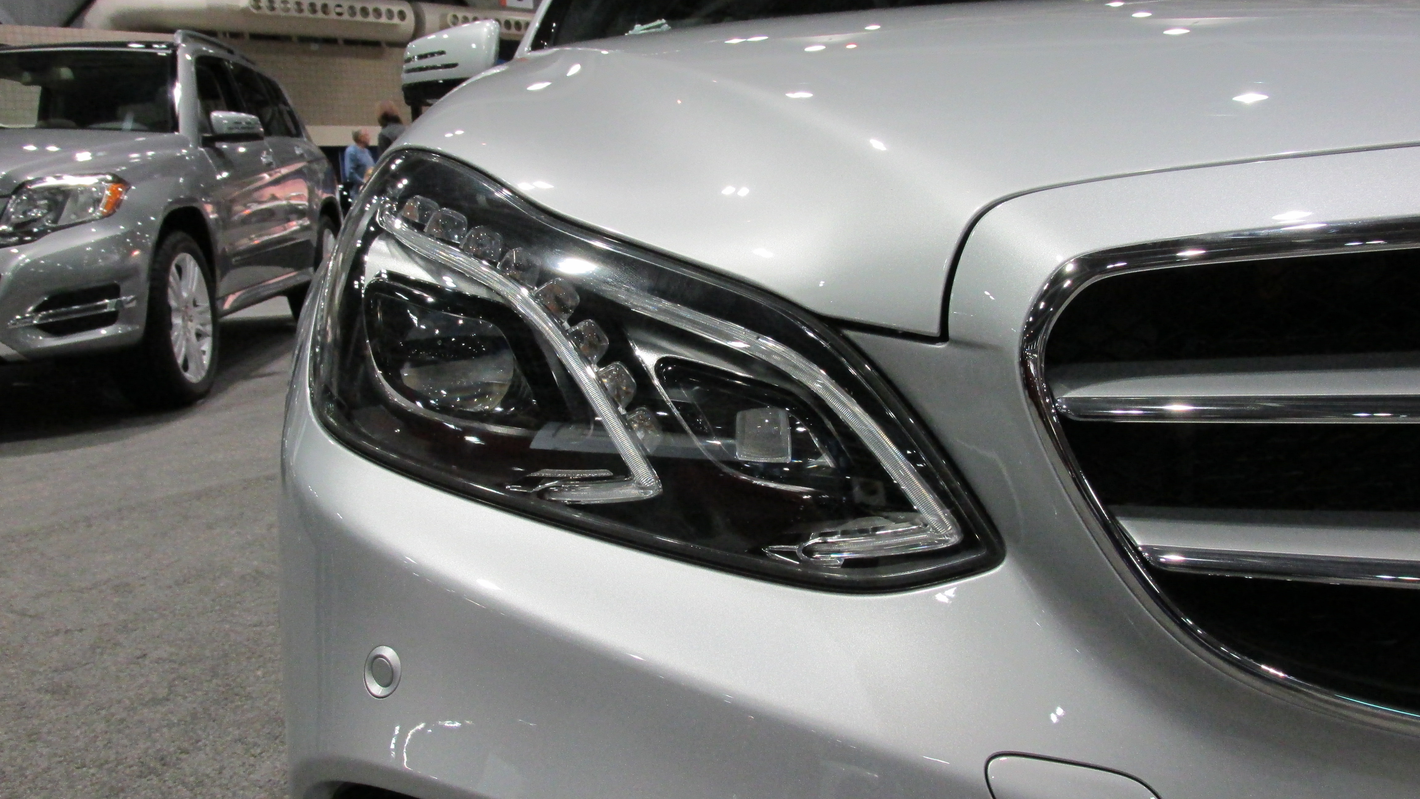 Para este año, pero como modelo 2014 al menos en este continente, la Clase E recibe nuevo rostro, especialmente nuevos ojos y solo un par, aunque cada uno alberga 2 lamparas acompañadas de luces diurnas de formas muy peculiares.