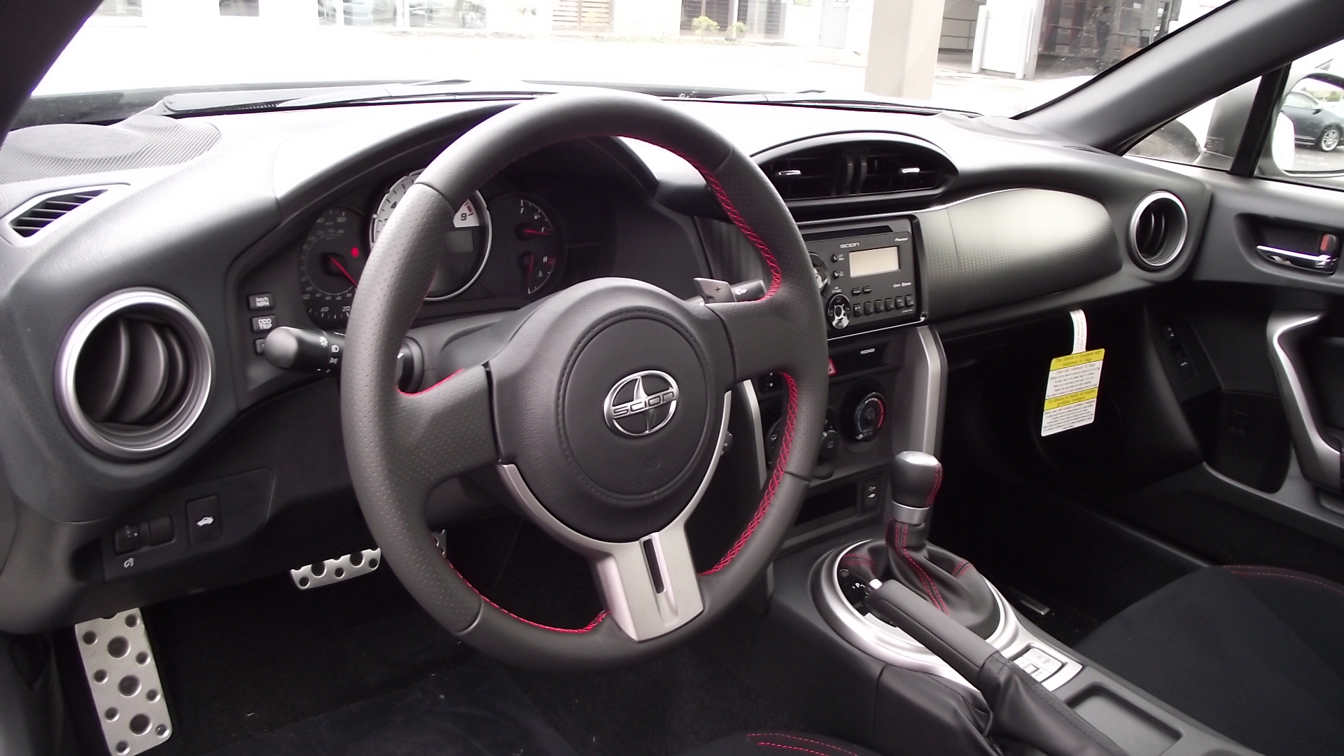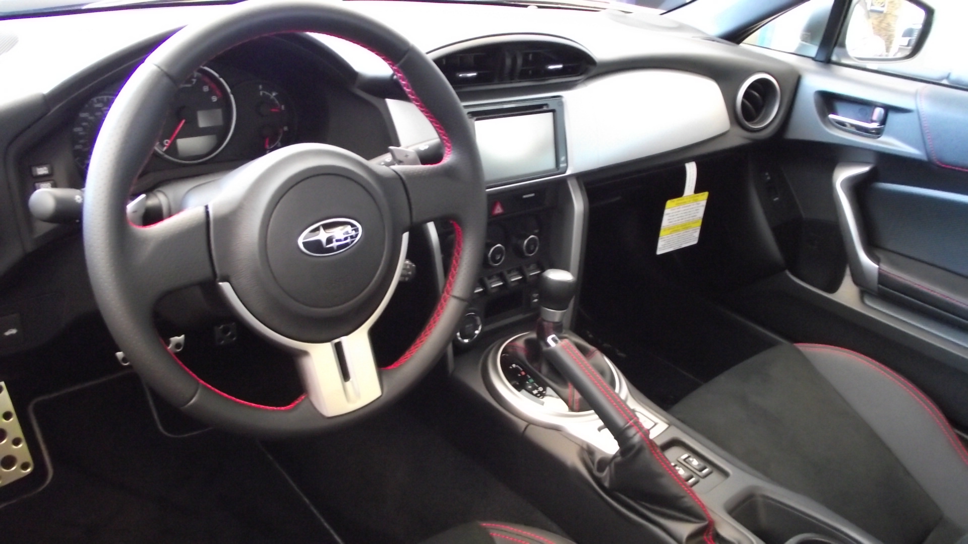 El freno de mano en en Subaru tiene costuras en rojo mientras el del Scin es mucho más simple. Otra cosa más sencilla en el FR-S es la apariencia de la consola central. Como vemos, en el BRZ se puede tener encendido con botón.